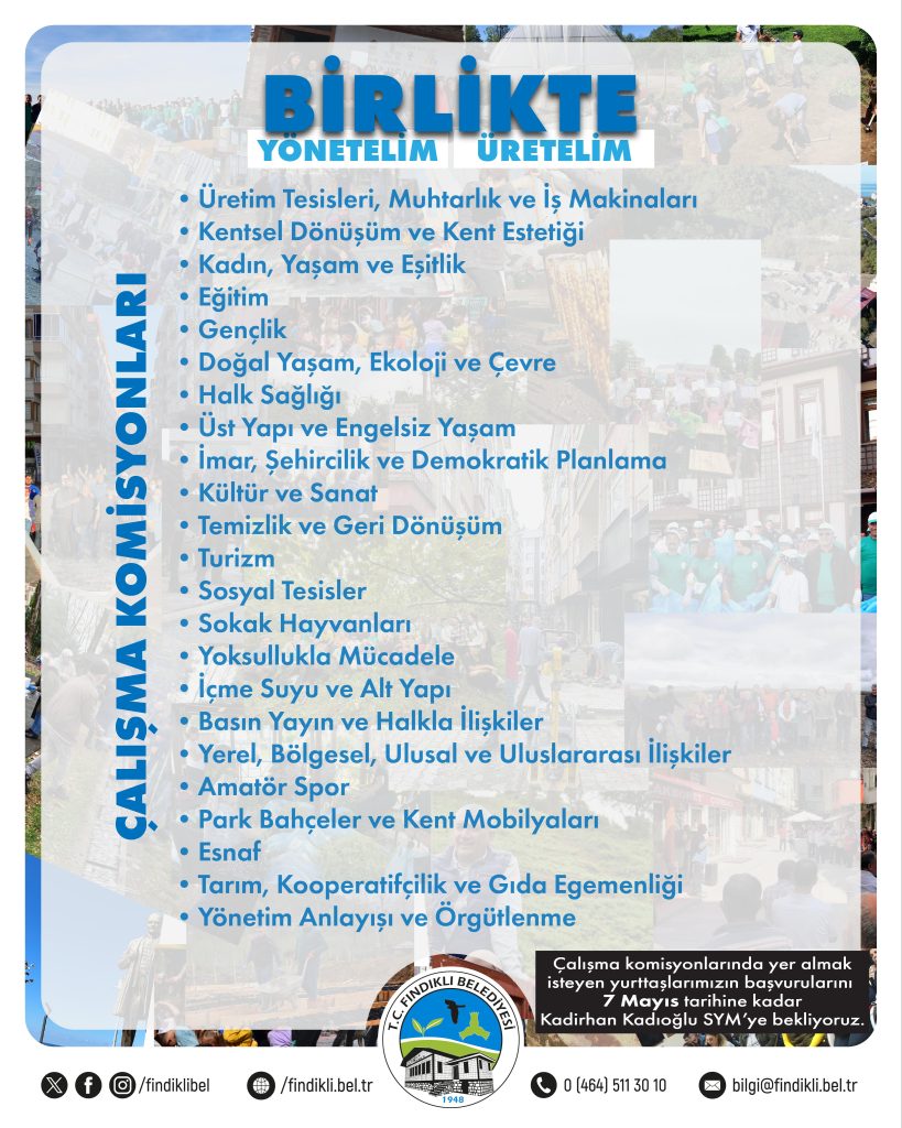 Başvurular, 7 Mayıs 2025 tarihine kadar Kadirhan Kadıoğlu SYM danışmanlık ofisine yapılabilecek. Detaylı bilgi ve başvuru koşulları için Fındıklı Belediyesi’nin resmi web sitesi (https://findikli.bel.tr/calisma-komisyonlari/) ziyaret edilebilir. Belediye, tüm yurttaşları bu sürece katılarak birlikte üretmeye ve yönetmeye davet ediyor.